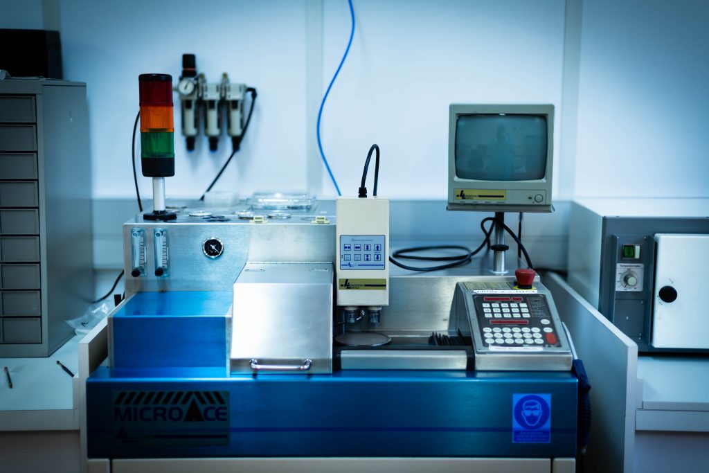 - 400m2 de salle blanche rassemblant les principaux moyens de fabrication et de test de circuits intégrés sur silicium, conçues principalement pour la pédagogie