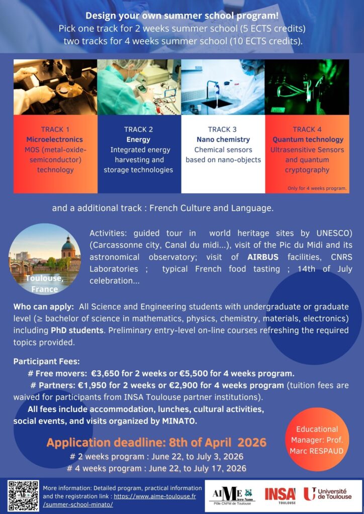 Do you wish to develop your knowledge in Micro and Nano-fabrication tools or Nanotechnology, while traveling the world, discovering french “art de vivre”, and meeting new people with different cultural backgrounds ?